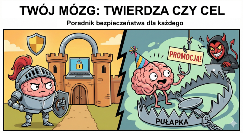 Czy zastanawiali się Państwo kiedyś, dlaczego inteligentne i ostrożne osoby dają się nabrać na proste sztuczki oszustów? Odpowiedź nie kryje się w braku wiedzy technicznej, ale w budowie naszego mózgu. To nie technologia jest najsłabszym ogniwem bezpieczeństwa – jest nim mechanizm, który miliony lat temu pozwalał nam przetrwać, a dziś bywa wykorzystywany przeciwko nam.