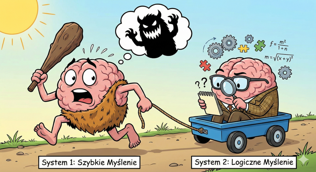 Nasz mózg dysponuje dwoma systemami przetwarzania informacji. Jak opisuje noblista Daniel Kahneman, System 1 jest szybki i emocjonalny, a System 2 powolny i logiczny. W sytuacjach silnego stresu – np. gdy słyszymy w słuchawce, że nasze pieniądze są zagrożone – dochodzi do tzw. „porwania migdałowatego”. Nasz ośrodek emocji (ciało migdałowate) przejmuje stery, odcinając korę przedczołową odpowiedzialną za chłodną analizę. W takim stanie mózg nie szuka prawdy, lecz najszybszego wyjścia z zagrożenia, co czyni nas bezbronnymi wobec manipulacji.